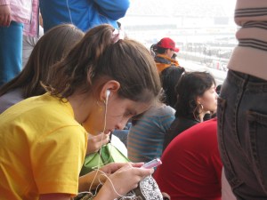 In my section I counted eleven people who held up video cameras and recorded the whole race.  I’ve seen people do this at other sporting events as well, and I can’t understand the motivation to record a shaky, lower quality version of an event already shown on TV.  Do these people think their shaky handheld camera will produce higher quality footage than the professionals?  Or do they plan to watch and re-watch the footage at home so they can relive every moment of the event they missed the first time because they were so busy recording it?