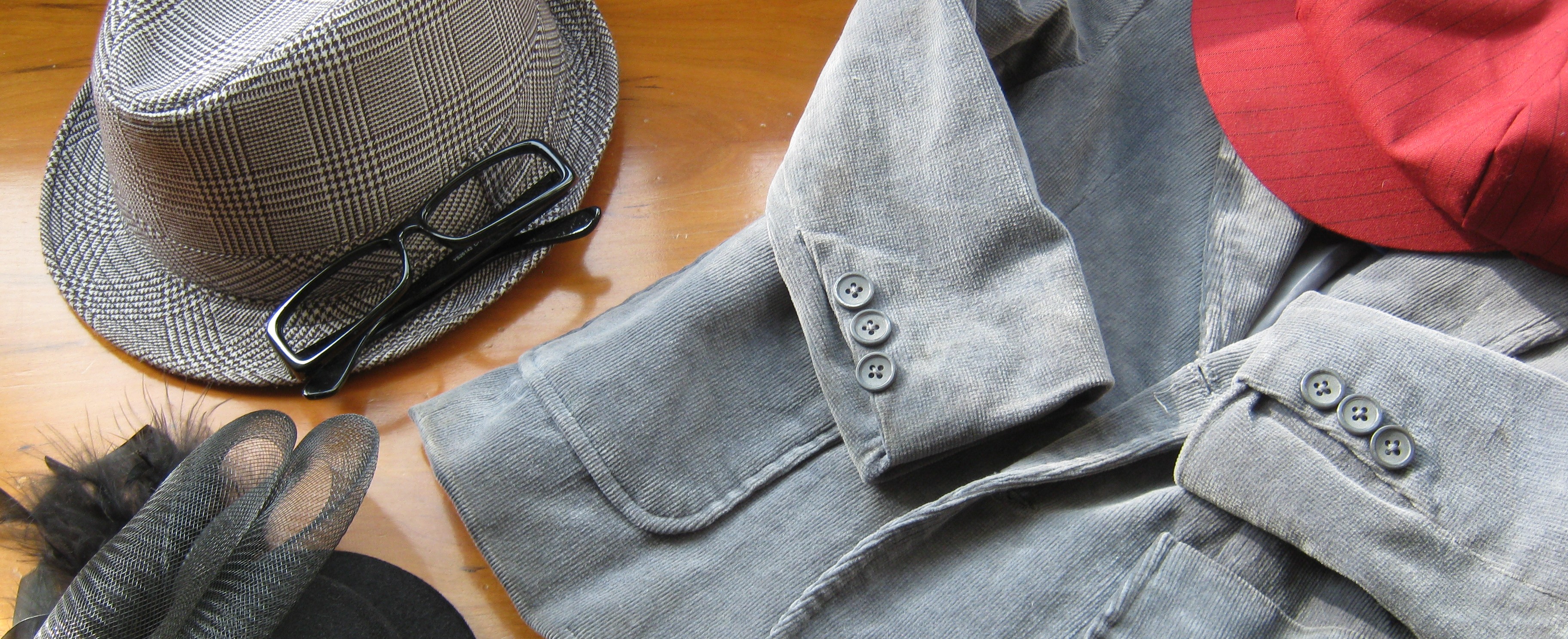 I wear a straw fedora, and my wife wears a teeny tiny hat. You have to look really close to even see it.