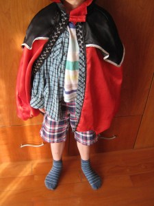 6 minutes 50 seconds: Our sons change into the clothing I have carefully selected to display their individuality. My nine-year-old will play a hipster and puts on dark jeans, an argyle sweater vest, black glasses without lenses, and a black-and-white plaid fedora. My seven-year-old puts on a tiger t-shirt, blazer, and a newsboy cap–I call this style The Professor Newsboy (copyright pending). I say my kids “change into”, but I’m not sure you can technically “change” if you weren’t wearing a shirt or pants to start with.