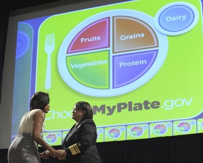 Helping to unveil the new My Plate icon were First Lady, Michelle Obama, and Surgeon General Regina Benjamin.  During the press conference, both women emphasized that exercise was also an important step in maintaining a healthy lifestyle and demonstrated the ease of getting some quick exercise by performing a short waltz.