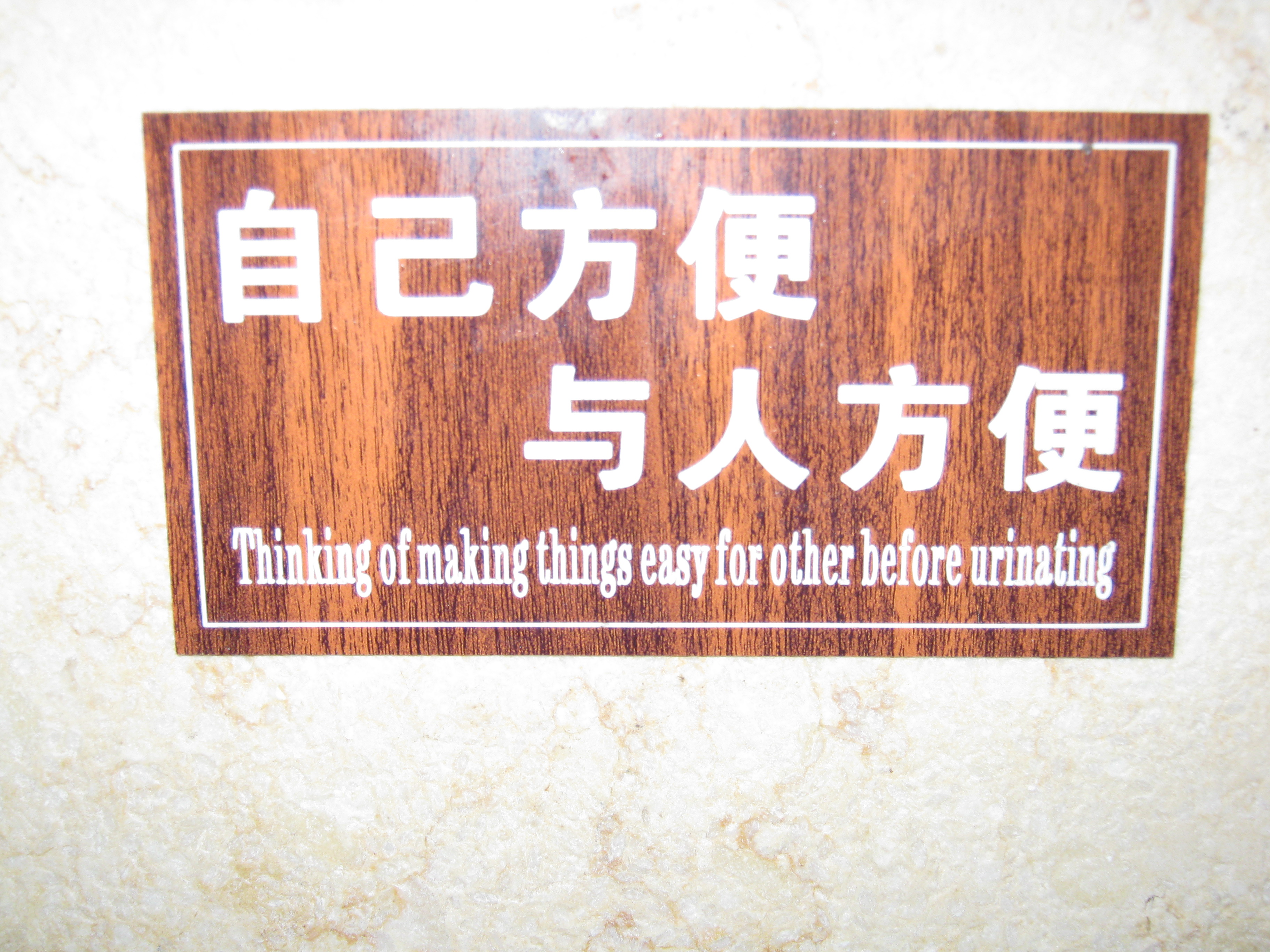 I found this sign above a urinal in a small village outside Chengdu: