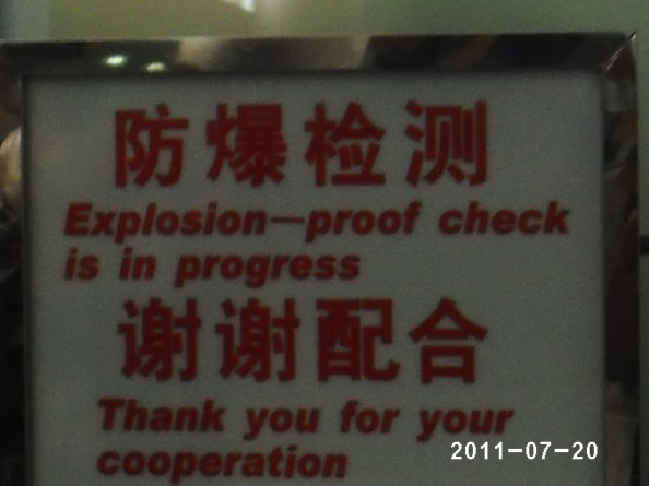 I’m not sure how security checks to make sure an item is explosion proof.  Seems like they’d have to try and blow the item up in order to determine its unexplodability.  My son didn’t make clear to me if security was only exploding luggage or also exploding people.