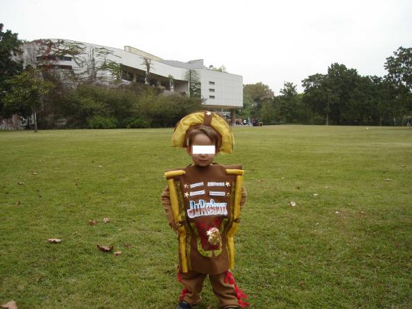 Also in 2007, our complex chose to do trick-or-treating a weekend earlier than Halloween night, and we were unaware until the first trick-or-treaters rang the doorbell. The costumes above weren’t finished yet and we literally completed the costumes below in less than ten minutes. The white on Optimist Prime’s face is bar soap.