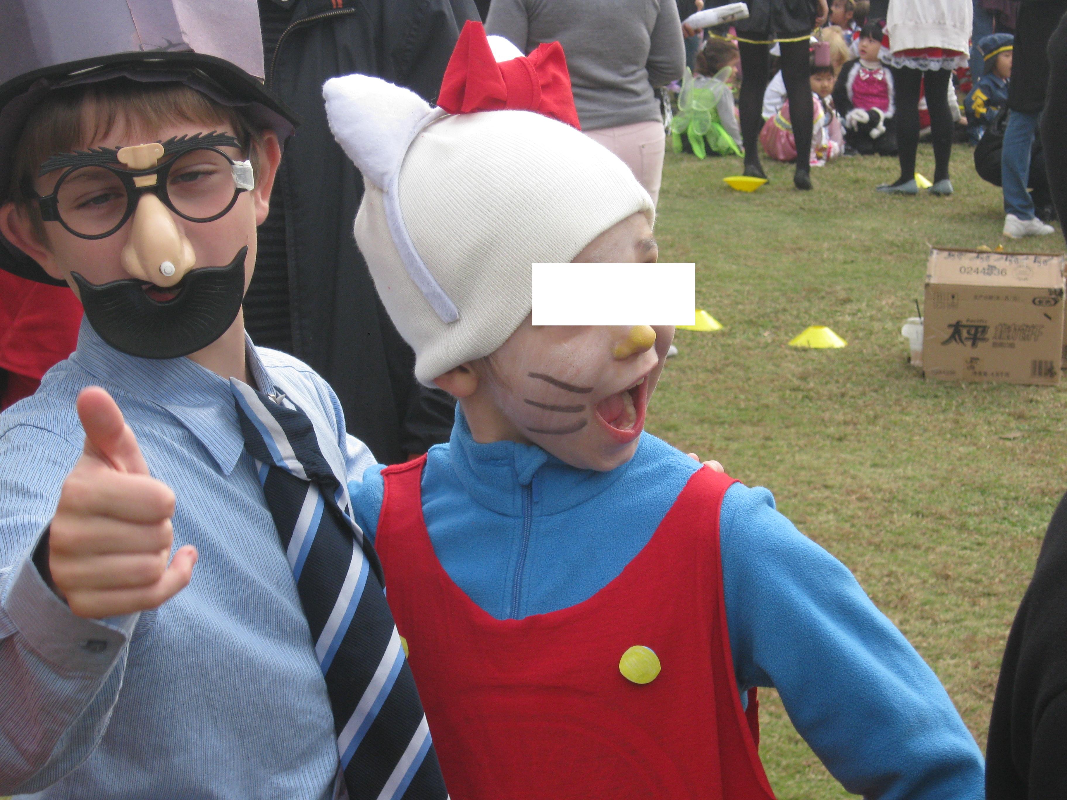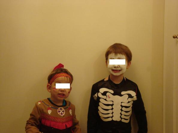 Your kids are really cute, even with the white bars across their faces. Costumes are creative and fun! My kids are nothing that exciting…a firefighter and a dalmation who won’t wear her costume.