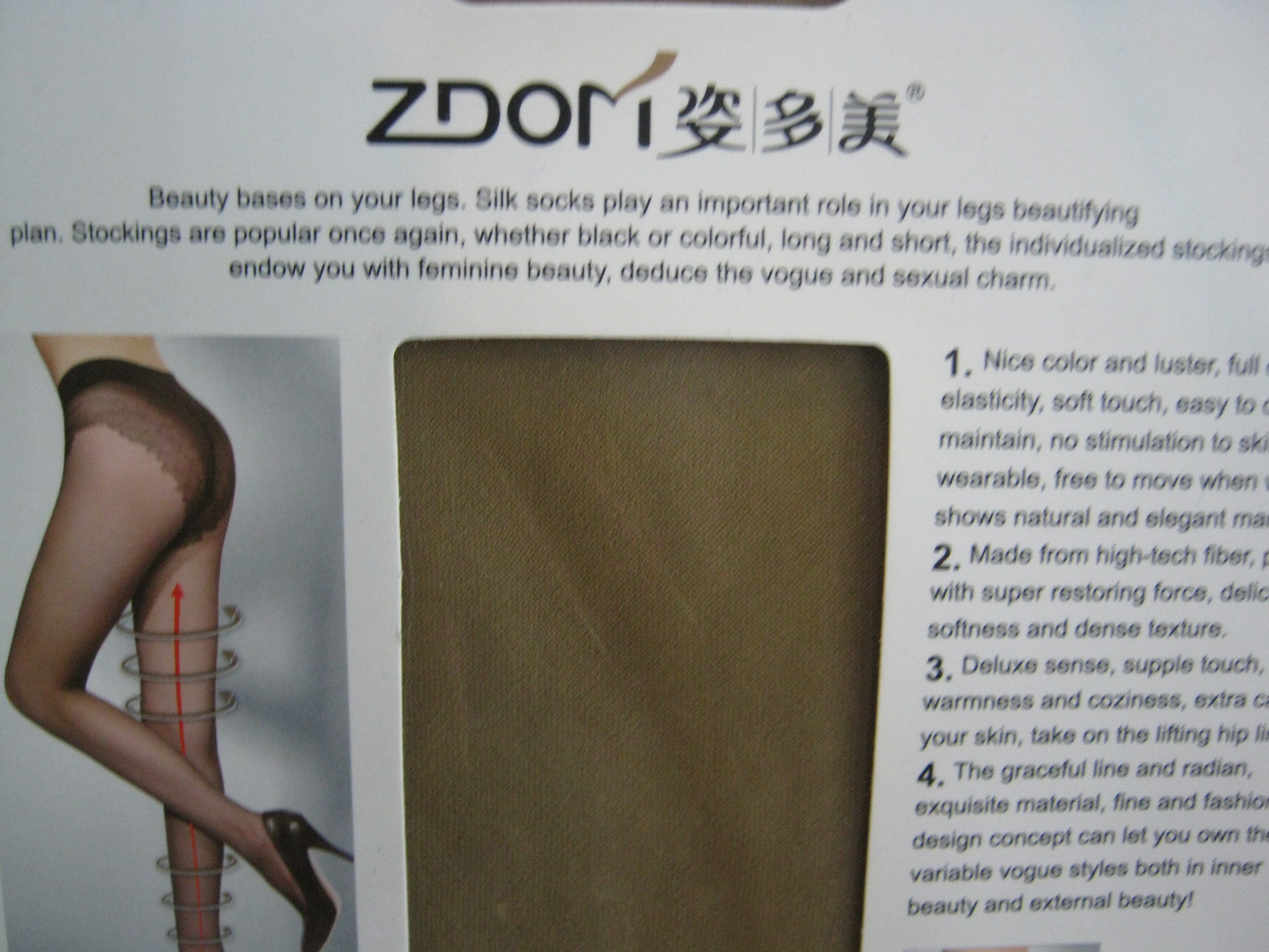 “Beauty bases on your legs. Silk socks play an important role in your legs beautifying plan. Stockings are popular once again, whether black or colorful, long and short, the individualized stockings endow you with feminine beauty, deduce the vogue and sexual charm.”