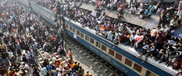 I saw this picture of a crowded train of Muslims heading home for a religious festival.