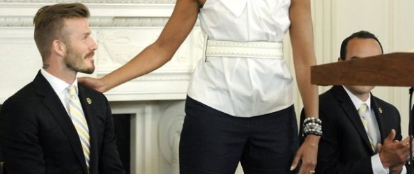 I knew Michelle Obama was a tall woman, but this picture of her standing next to the 6’0″ tall soccer star, David Beckham, truly puts her staggering height in perspective.